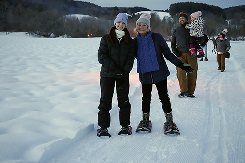 As the evening begins, snowshoe, ski, or stroll along a torchlit path through the beautiful Billings Farm pastures. Along the way, meet National Park Rangers from the Marsh-Billings-Rockefeller National Historical Park and Billings Farm & Museum staff, and learn about local wildlife, the history of the land, and the people who lived here. Gather around the fire pit with friends and family and warm up with complimentary s'mores, hot cocoa, coffee, or tea.